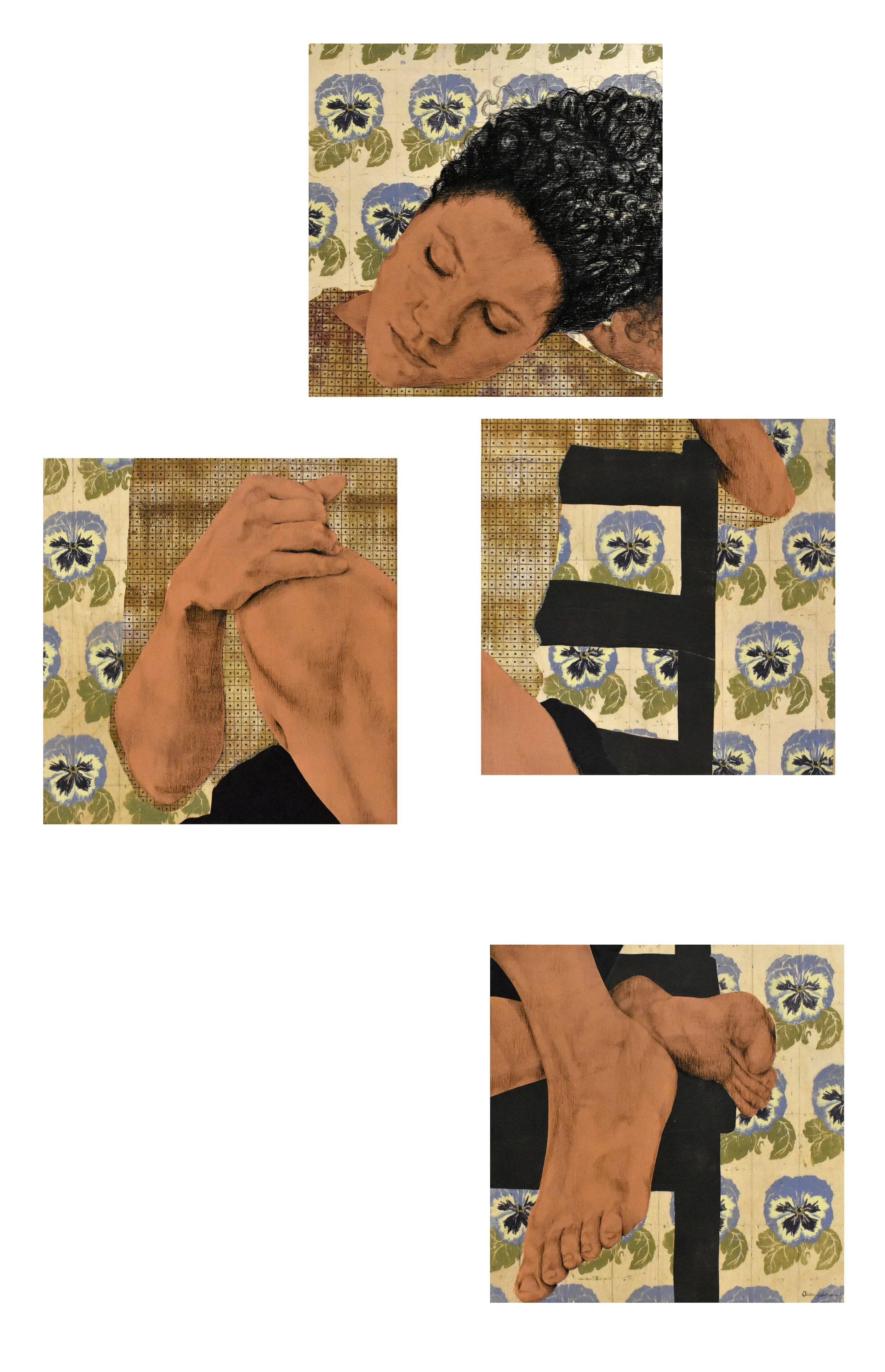 Collage, Linocut, and Pencil on Wood Panel 48 x 60 in